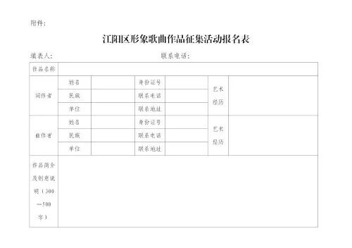 (四)提交作品时,需同时提交《江阳区形象歌曲作品征集活动报名表》(见附件)。