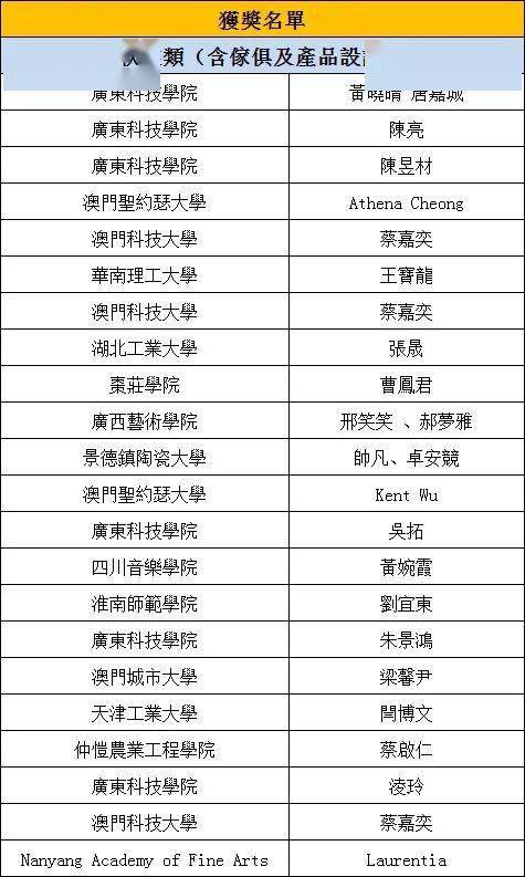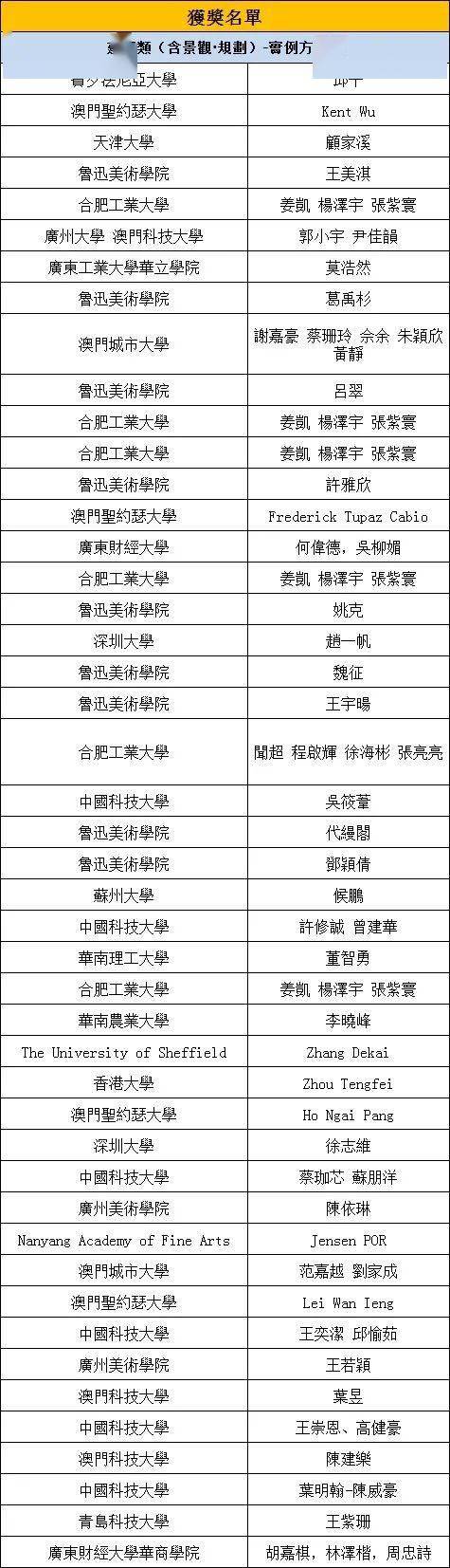 以下名單為金銀銅、優秀獎所有的獲獎名單,排名不分先後,具體獲獎名次將在頒獎典禮上公佈。